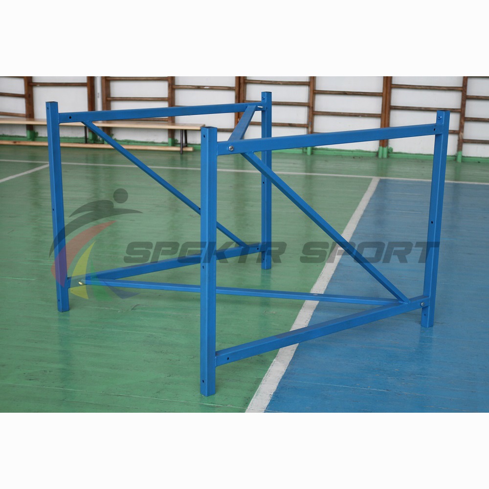 Одна косая связь (диагональная балка) связывает две цельносварные рамы. Таким образом, конструкция достаточно прочная и надежная для размещения на ней тренировочного баскетбольного щита.